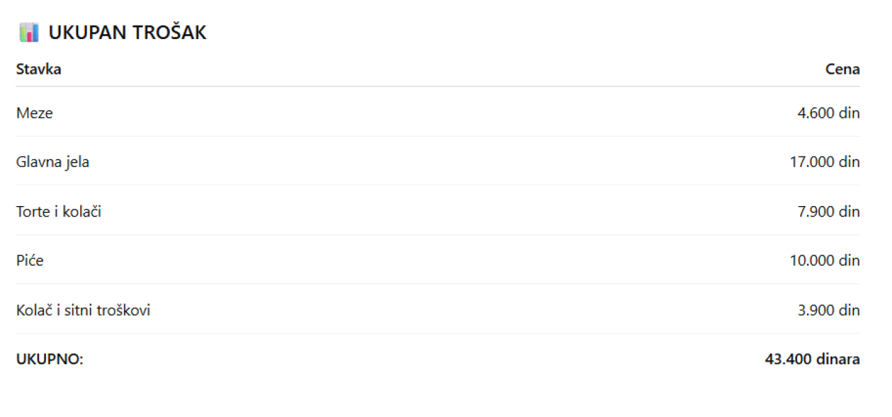 Sa oko 43.000 dinara, možete pripremiti trpezu za 20 ljudi koja izgleda bogato, a ne opterećuje budžet.