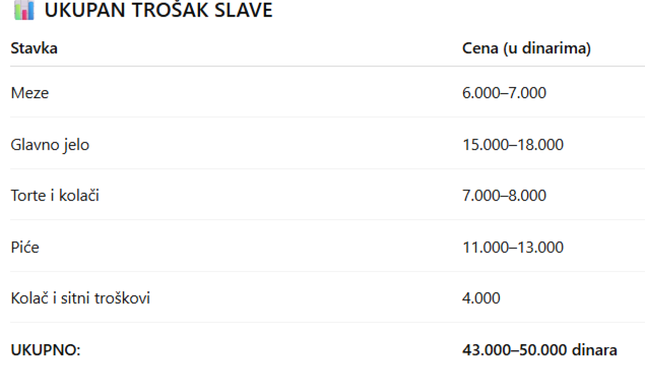 Za pravu, domaćinsku posnu slavu sa 25 gostiju, trpeza će koštati između 35.000 i 40.000 dinara.