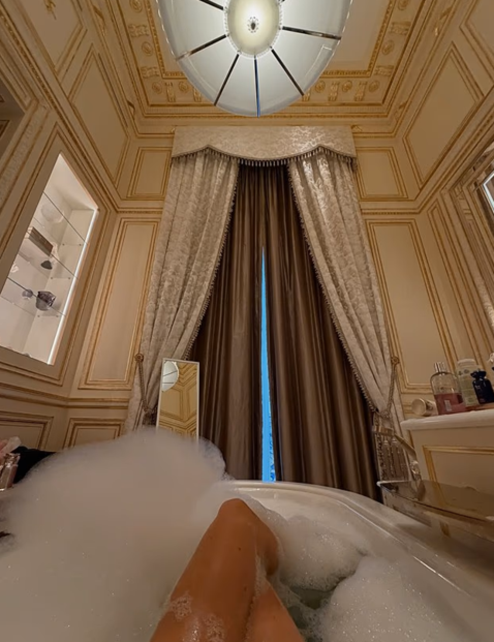 Pevačica je podelila i trenutke luksuza – selfie iz kade, prizore sa revija, ali i fotografije iz privatnog aviona, uključujući pogled na auroru borealis. Na nekoliko snimaka vidi se i njen verenik Metju Rutler, za koga se pretpostavlja da je upravo on autor provokativnih fotografija.