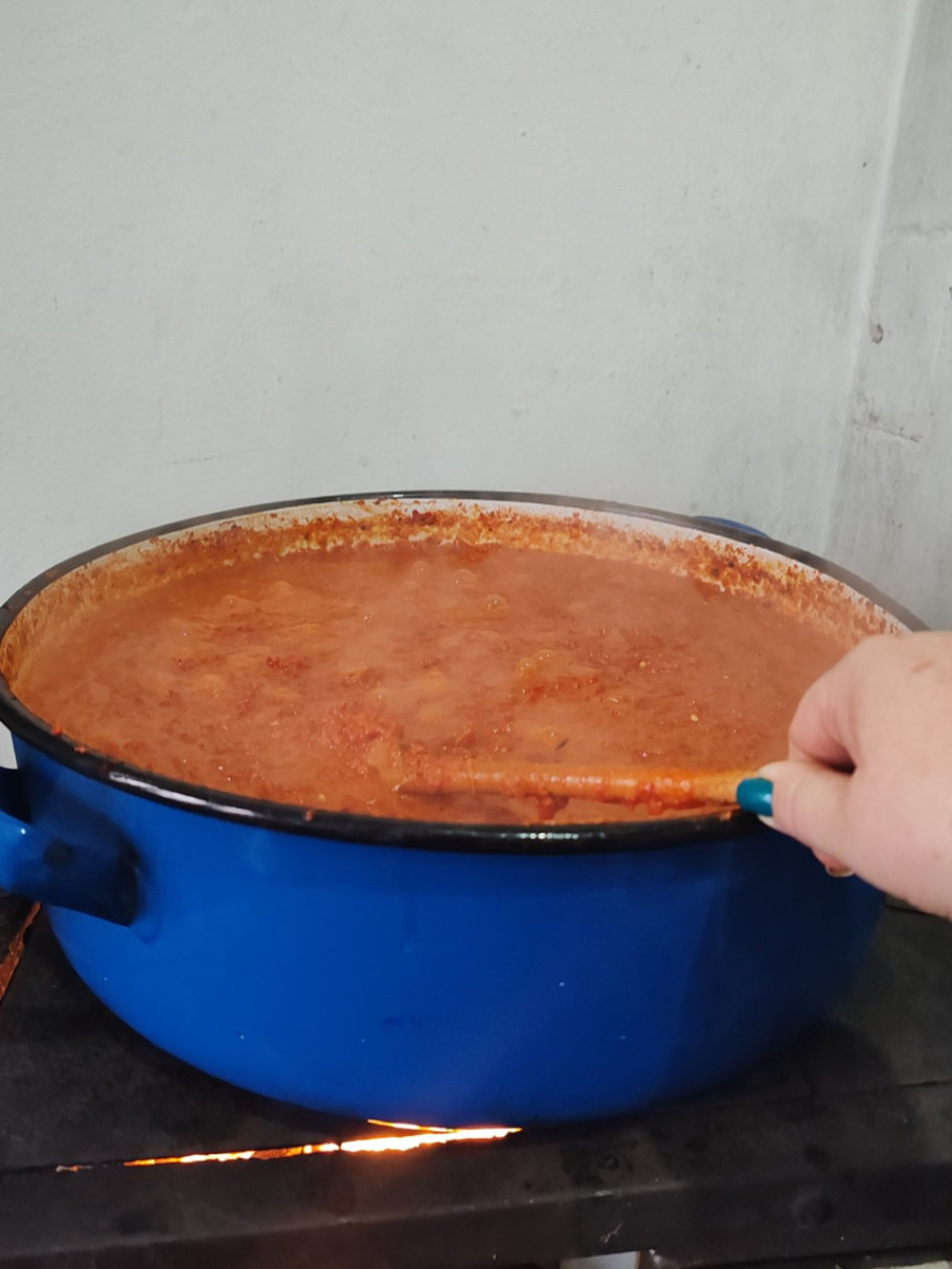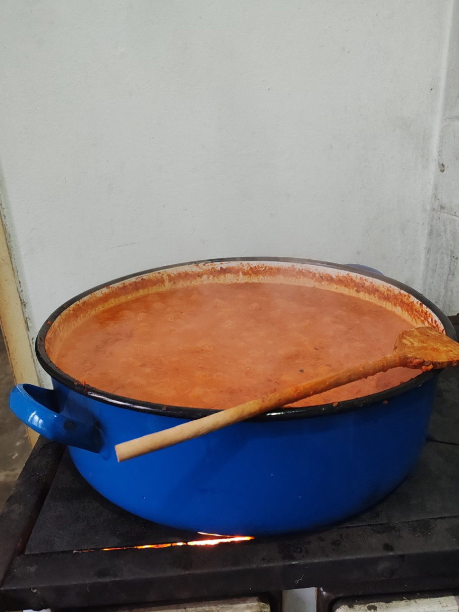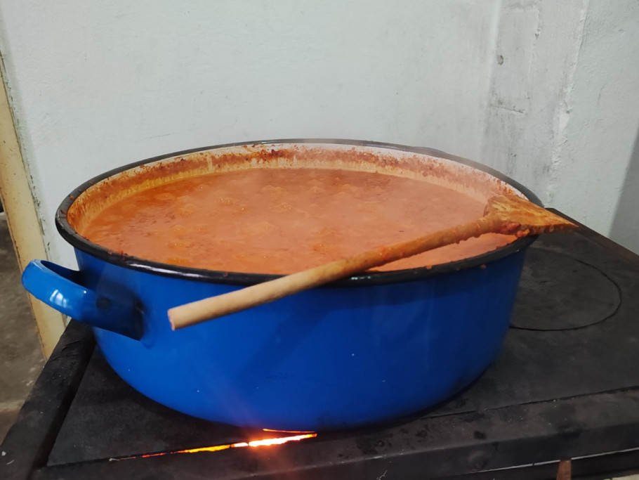 A tek onda je nastala prava borba na smederevcu. Vatra pucketa, ajvar krčka, a ja ga mešam, mešam, mešam.
