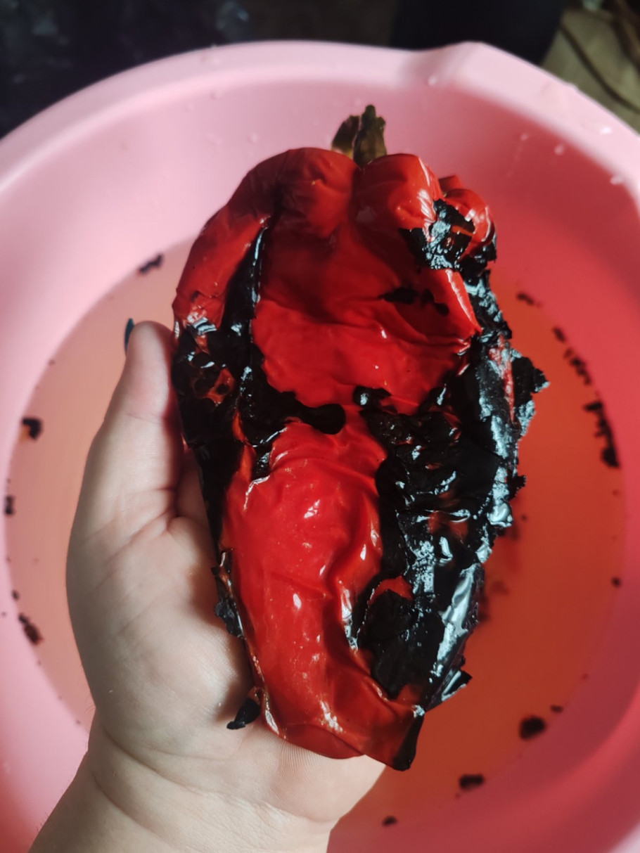 Sutradan "Jovo nanovo". Krećem da ljuštim - ruke i nokti crveni, kuhinja prljava, kao horor film. Dosadan posao, ali ja strpljivo, paprika po paprika, sve dok nisam postala pravi majstor za skidanje kožice.