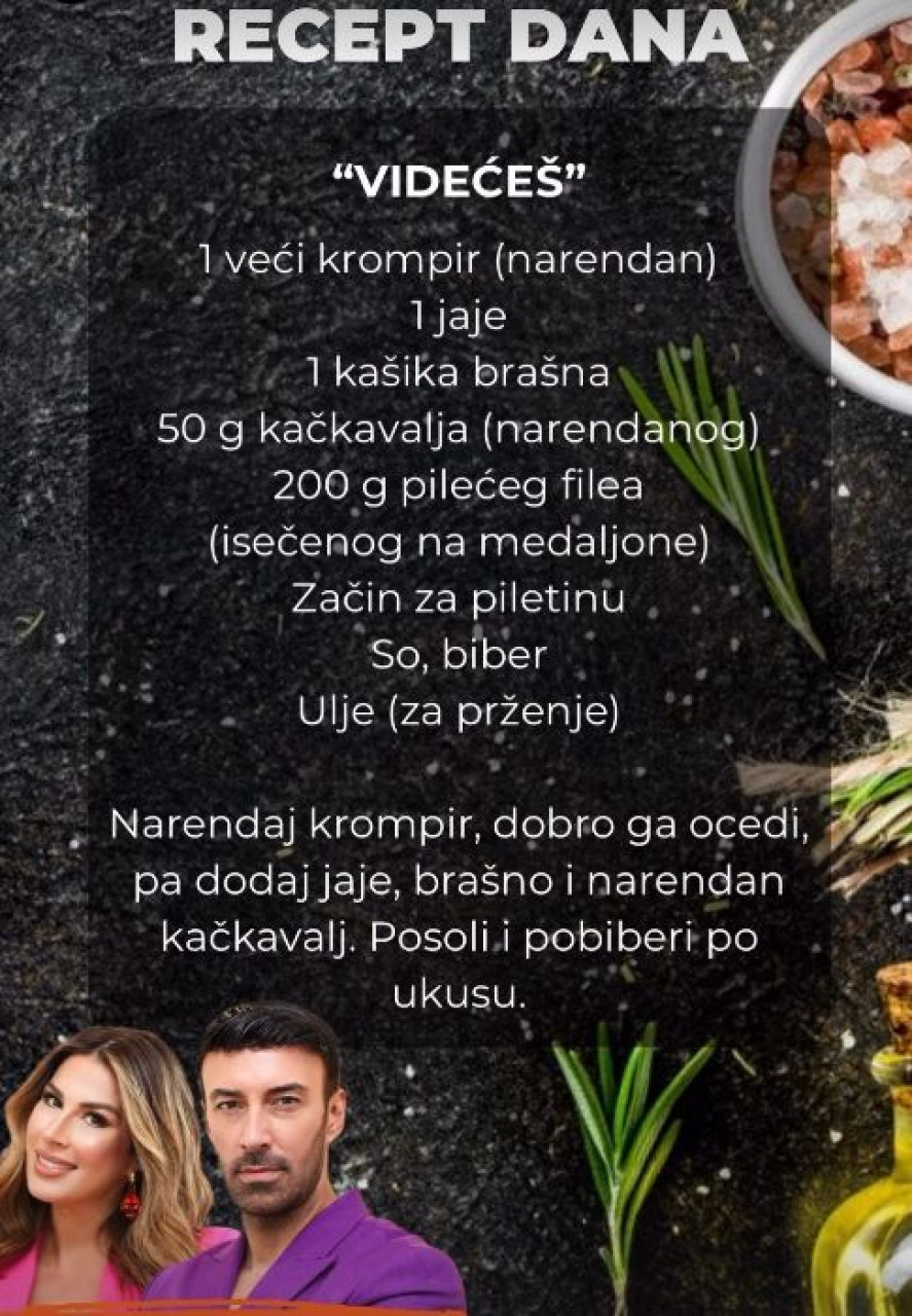 U današnjoj emisiji „Žena za sva vremena“, na meniju se našlo nešto što je odmah privuklo pažnju – recept koji nosi pomalo neobičan, ali veoma duhovit naziv „Videćeš“. I zaista, oni koji su probali ovo jelo, kažu da je ime više nego opravdano.