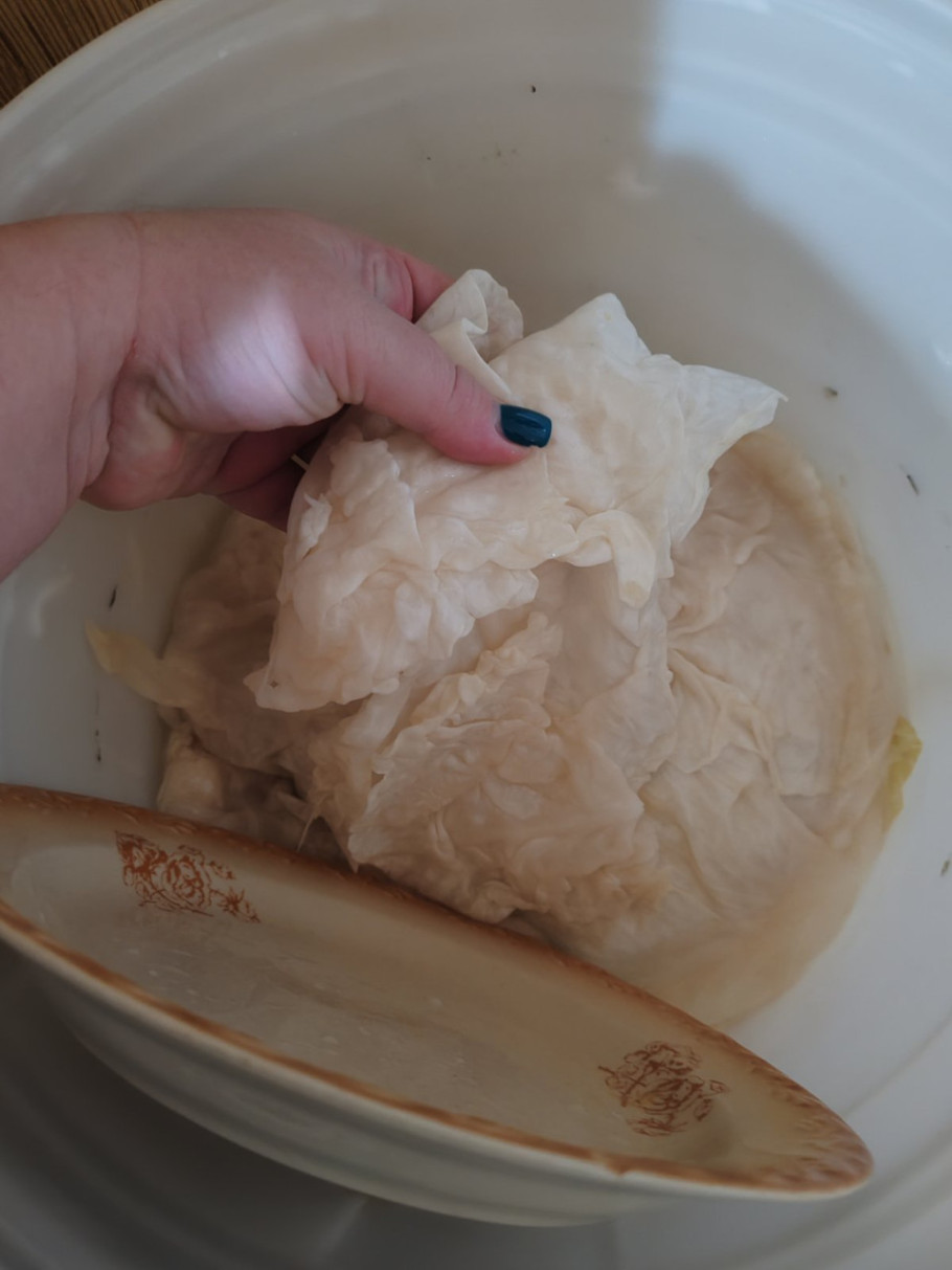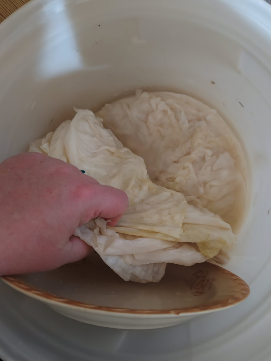 Kada se voda u kojoj ste vrteli kupus, prohladila do mlakog, prelijte njome liske u vangli. Ostavite da odstoji.