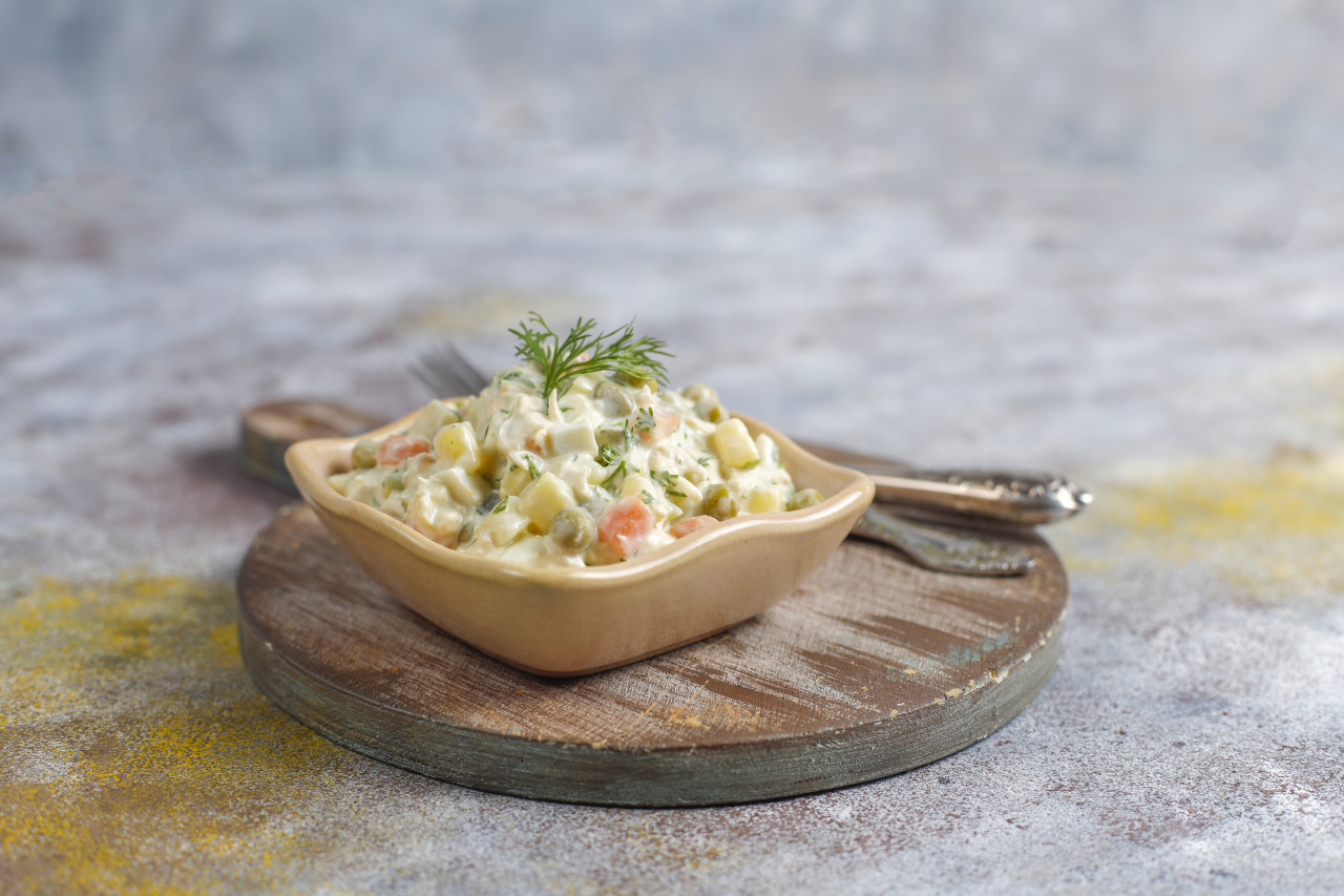 Nastala je još u 19. veku u Moskvi, kao luksuzno jelo koje je spremao francuski kuvar Lisié Olivije. Prvobitna verzija bila je skoro pa aristokratska – sa divljači, kaparcima i kavijarom. Ali kod nas, na Balkanu, recept je dobio svoju dušu: jednostavniju, topliju, domaćinsku. Kuvana šargarepa, krompir, grašak, kiseli krastavčići, jaja i majonez – jednostavno, a neodoljivo.