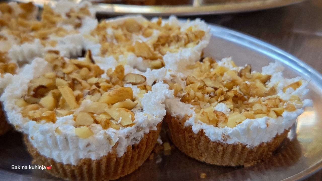 U blender stavite keks i jednu kašiku kakaoa. Izmeljite zajedno dok keks ne postane tamne, čokoladne boje. U tu smesu sipajte 100 g otopljenog maslaca i dobro izmešajte. Pripremite kalup za mafine sa papirnim korpicama. U svaku korpicu stavite po kašiku smese i dnom male čašice dobro pritisnite da dobijete čvrstu podlogu.