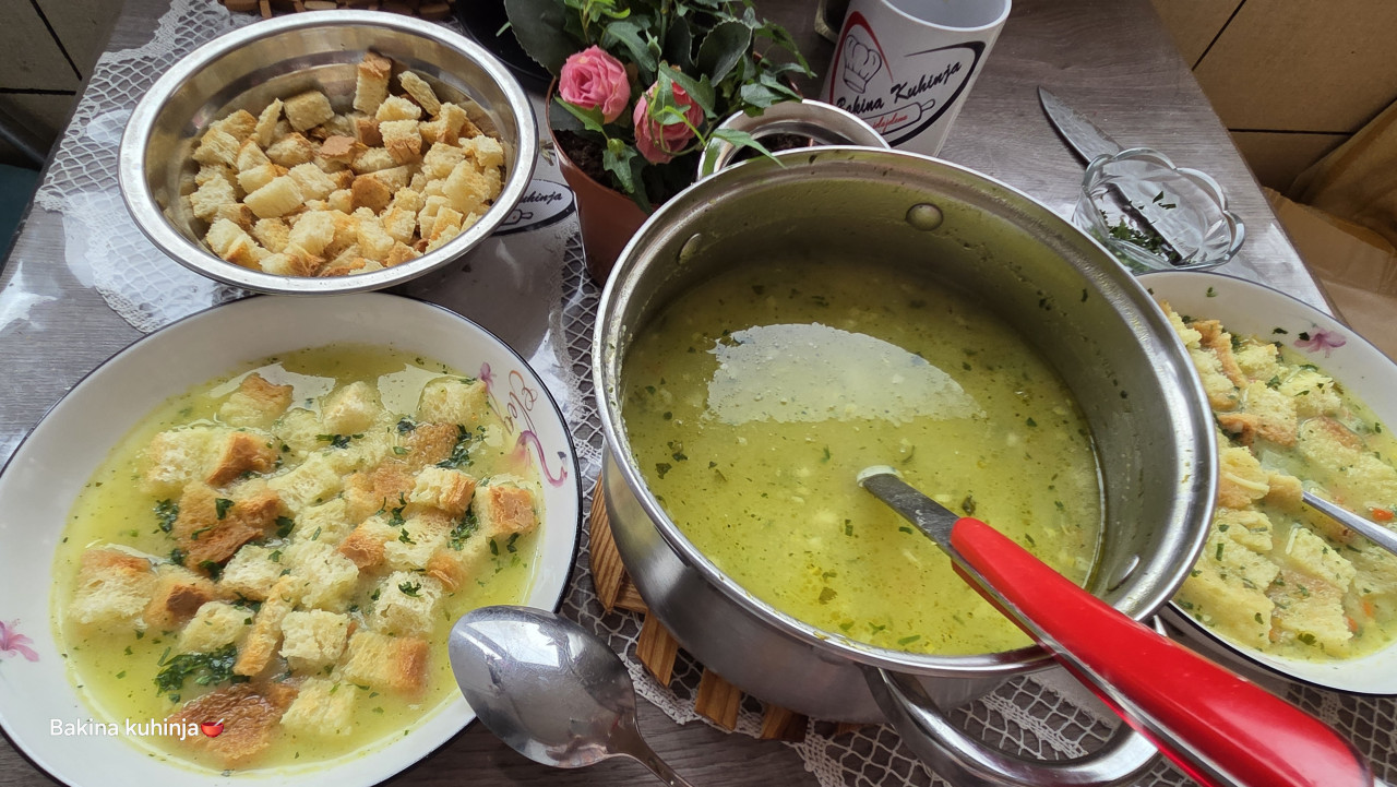 Jelena PetrovićNa kraju možete dodati svež peršun. Za krutone, iseckajte hleb na veoma tanke kriške i pecite u rerni ili fritezi dok ne postanu potpuno tvrdi i reš, pa ih iseckajte na kockice i pospite po gotovoj čorbi u tanjiru.