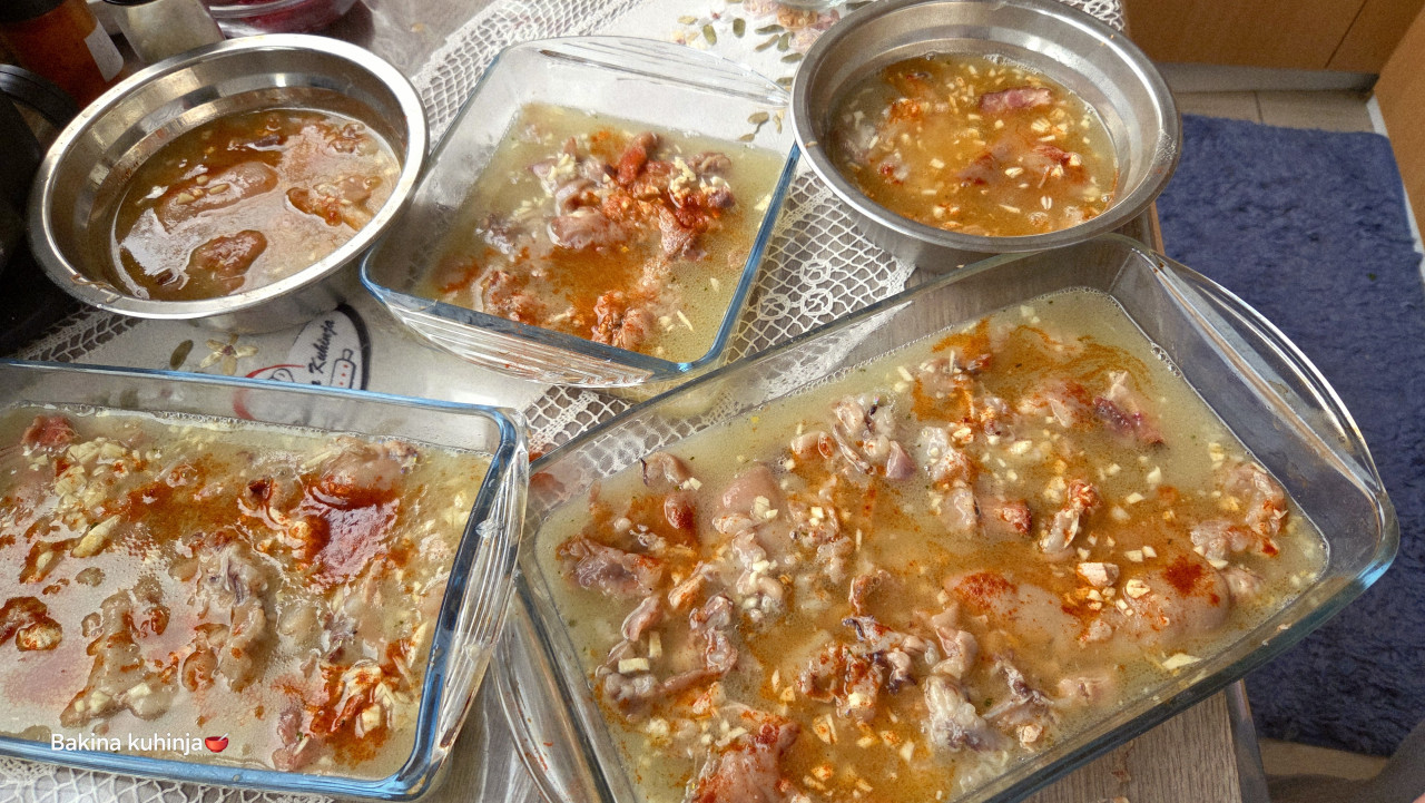 Ostavite na hladnom mestu da se steže oko dva sata a odozgo po želji pospite tucanom ljutom paprikom. Masnoću koja se skupi na vrhu možete skinuti pre ili posle stezanja a ono što ostane ispod je čist kolagen koji je odličan za zatezanje kože i zdravlje kostiju i zglobova.