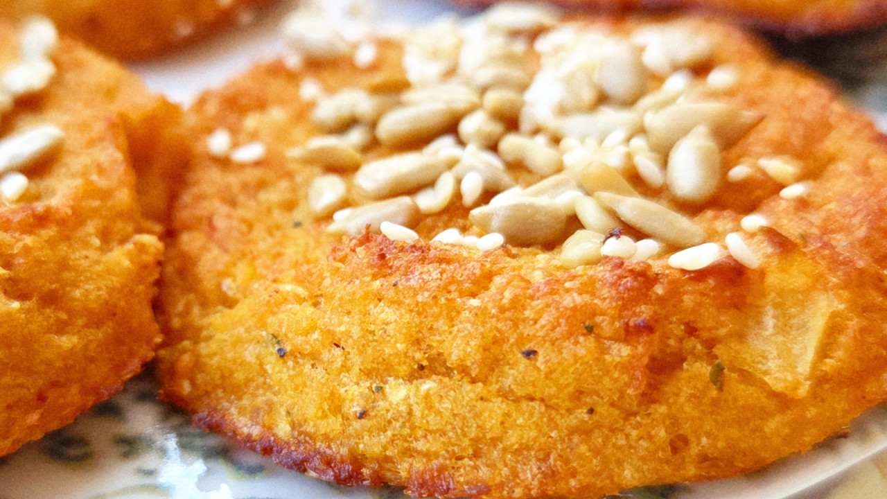 U smesu ubacimo suvi začin, mleveni biber, dve kašike prezli i jednu kašičicu slatke mlevene paprike, pa još jednom sve dobro sjedinimo. Tepsiju obložimo papirom za pečenje i premažemo ga uljem uz pomoć četkice. Kašikom vadimo smesu i u tepsiji oblikujemo pljeskavice pomoću čaše ili modle za krofne. Na kraju svaku pljeskavicu pospemo semenom suncokreta. Stavljamo u rernu da se peče oko 40 minuta dok lepo ne porumene. Prijatno!