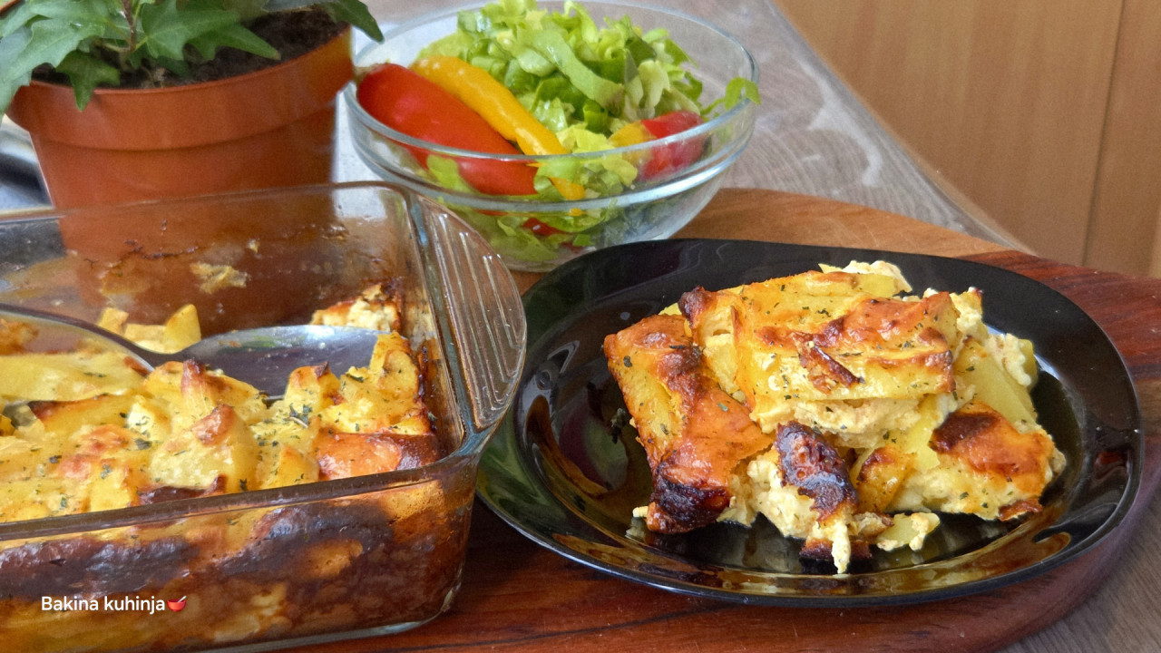 Ovako pripremljen krompir još niste probali jer tajna leži u načinu sečenja i posebnim začinima koji mu daju neverovatan šmek. Preliv od jaja i pavlake sa dodatkom kačkavalja koji se topi između svakog komadića napraviće od običnog priloga vrhunski ručak koji će vaši ukućani tražiti iznova i iznova.
