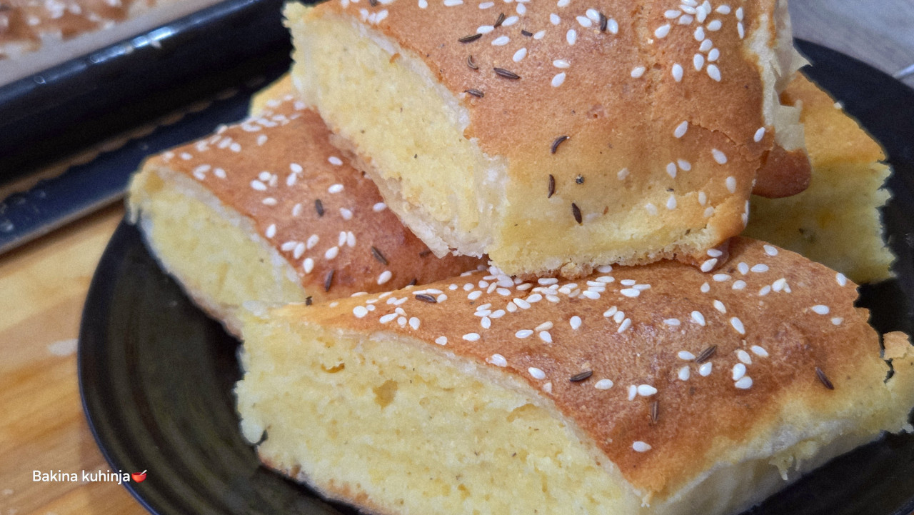 Milica MaksimovićPeći u zagrejanoj rerni na 200 stepeni oko 45 minuta dok ne dobije zlatnu boju i postane vazdušasta kao biskvit. Nećete moći da sačekate ni da se ohladi koliko dobro miriše!