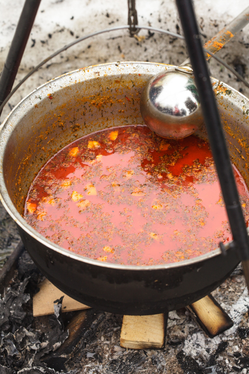 Na malo ulja propržite luk i šargarepu, dodajte krompir i začine, pa nalijte vodom. Kada provri, ubacite ribu i kuvajte još 15–20 minuta.